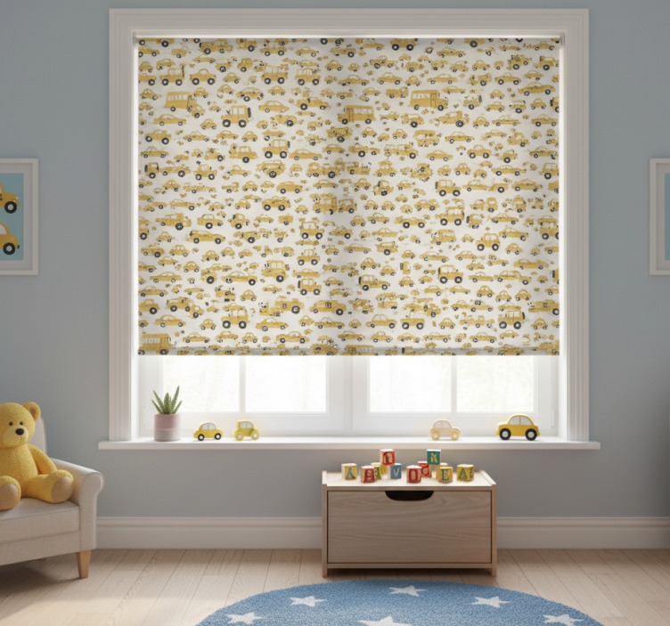 Tenda a rullo cameretta design auto gialla carina