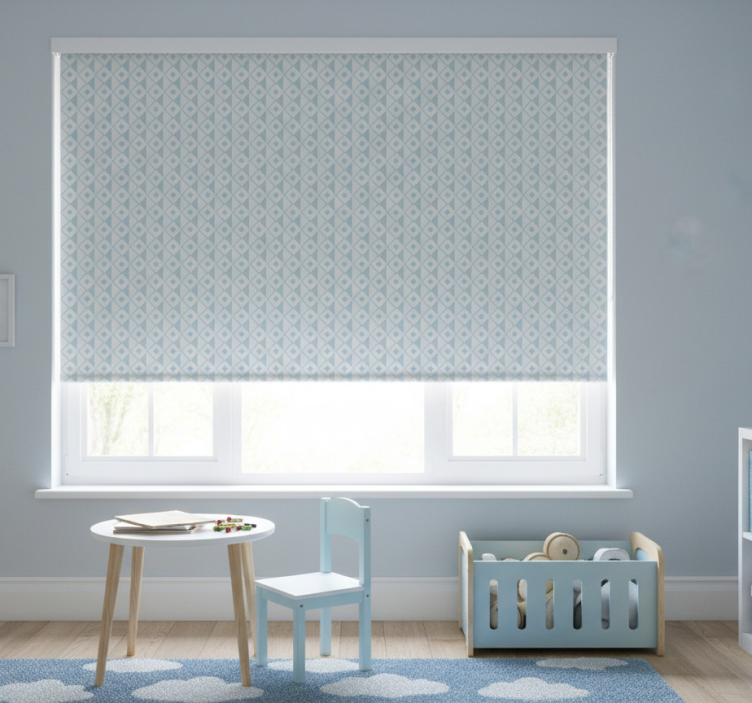 Tenda a rullo cameretta design rombi blu e bianchi