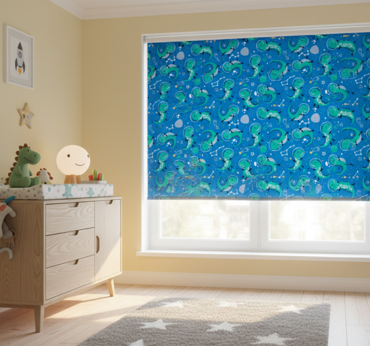 Tenda a rullo cameretta dinosauri divertenti con pianeti