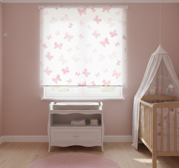 Tenda a rullo cameretta farfalle rosa