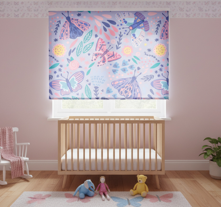 Tenda a rullo cameretta farfalle tonalità viola