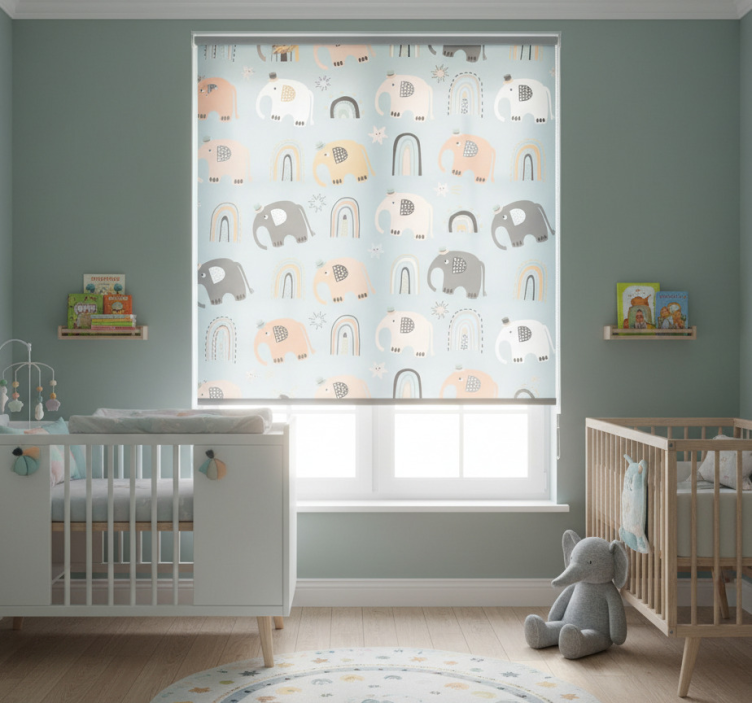 Tenda a rullo cameretta motivi elefante arcobaleno