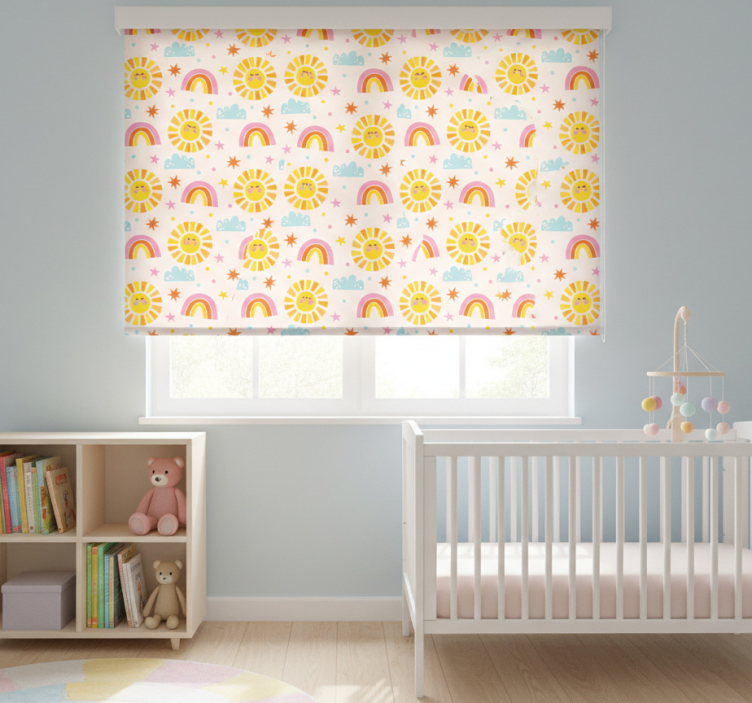 Tenda a rullo cameretta motivo arcobaleno rosa