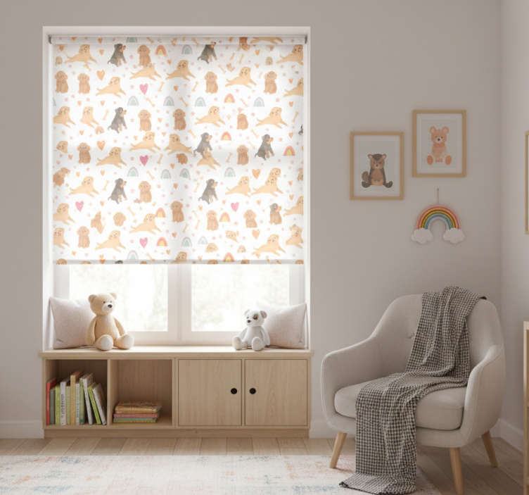 Tenda a rullo cameretta motivo cani e arcobaleni