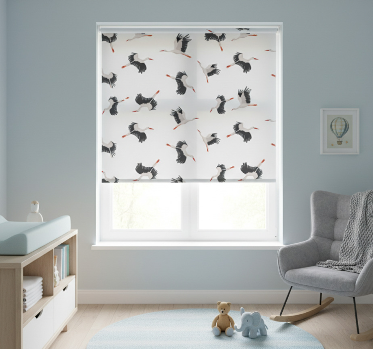 Tenda a rullo cameretta motivo cicogne volanti