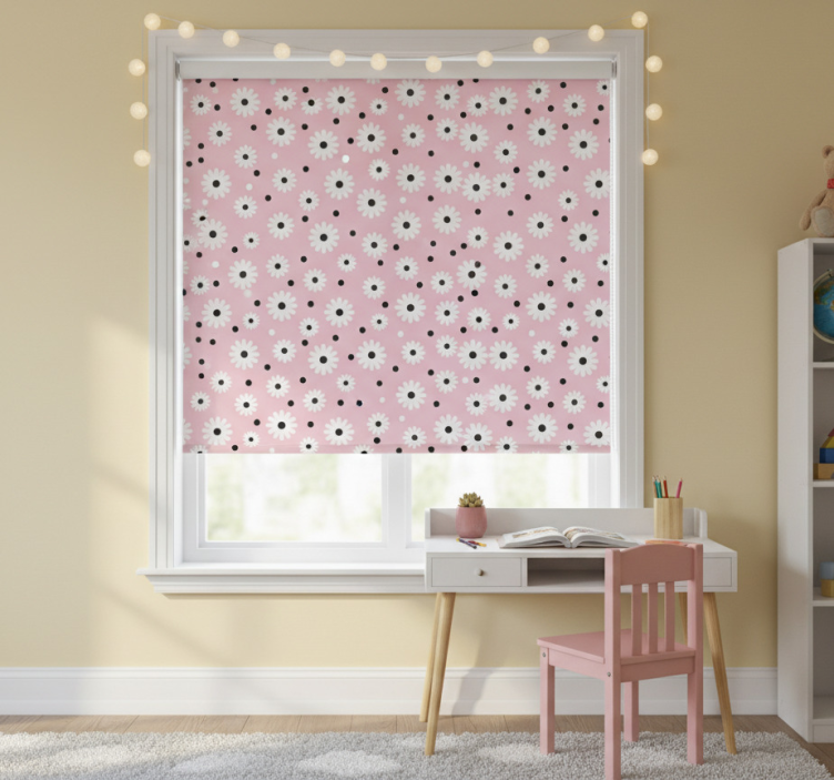 Utilizzare la tenda a rullo cameretta tenda a rullo cameretta motivo fiori a pois neri e rosa è un modo semplice e creativo per trasformare lo spazio dei vostri bambini! Grazie al suo design vivace, questa tenda migliora l'arredamento della stanza, donando un tocco di colore e originalità. Inoltre, offre privacy quando abbassata e aiuta a regolare la temperatura ambiente, rendendo l'ambiente più confortevole. È l'ideale per chi desidera una decorazione funzionale ma esteticamente gradevole!