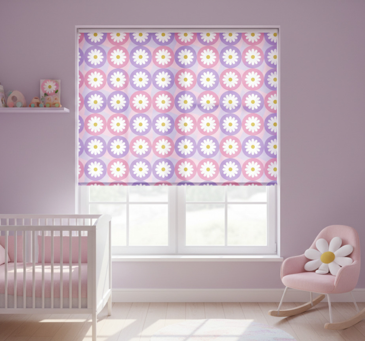 Tenda a rullo cameretta motivo fiori quadrati rosa viola