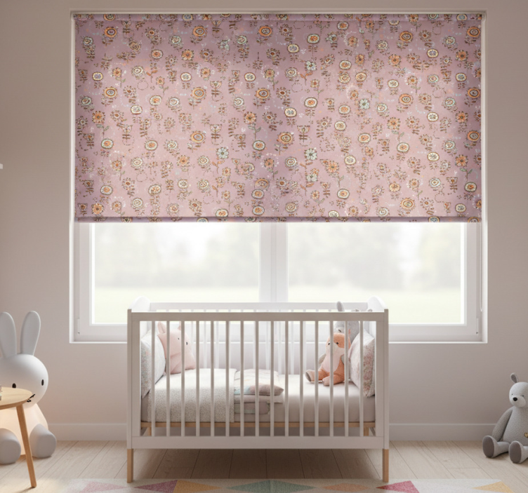 Tenda a rullo cameretta motivo floreale rosa svedese