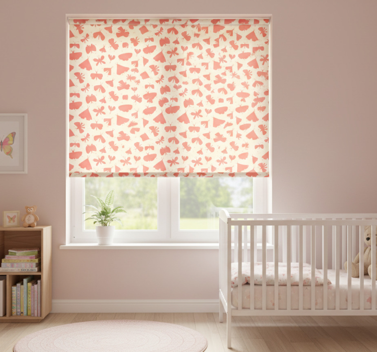 Tenda a rullo cameretta motivo geometrico farfalle rosa
