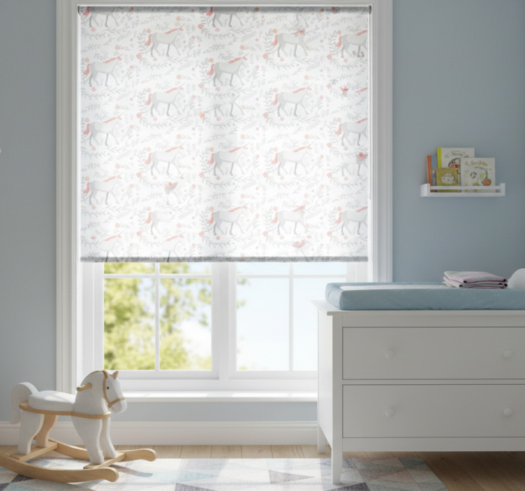 Tenda a rullo cameretta motivo unicorno con foglie