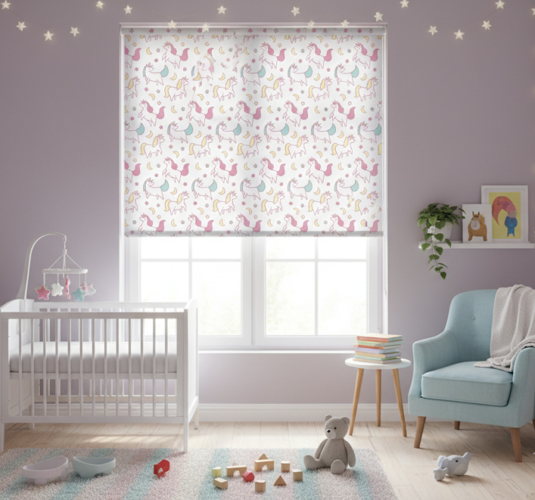Tenda a rullo cameretta motivo unicorno disegnato a mano