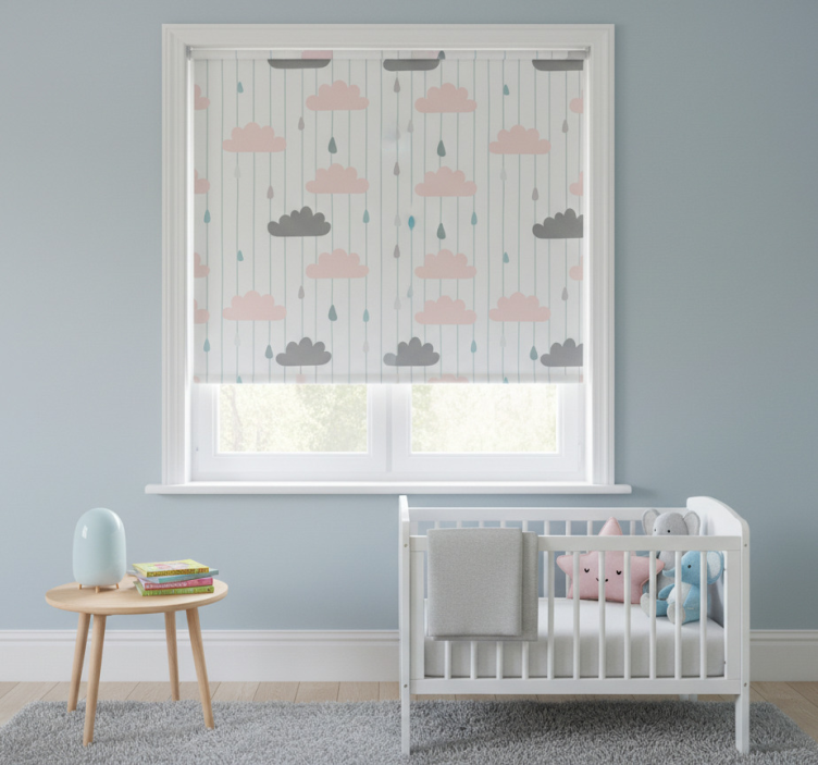 Tenda a rullo cameretta nuvole rosa e grigie