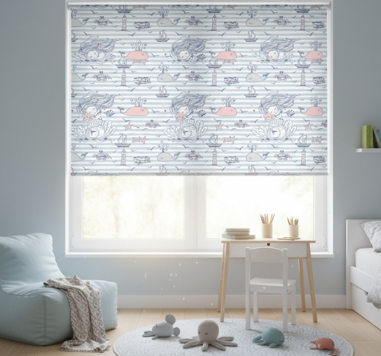 Riferimento: E6928Scopri la nostra tenda a rullo cameretta sirene e creature marine a righe, un elemento d'arredo che trasforma la cameretta in un magico mondo marino! Con un design incantevole caratterizzato da sirene, pesci e creature marine, questa tenda è perfetta per creare un'atmosfera sognante. Le righe colorate rendono ogni spazio vivace e accogliente, rendendo la stanza un luogo dove i sogni di avventura possono prendere vita!
