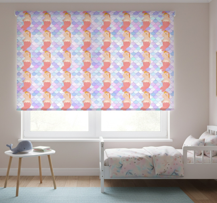 Tenda a rullo cameretta sirene unicorno su fondo squame