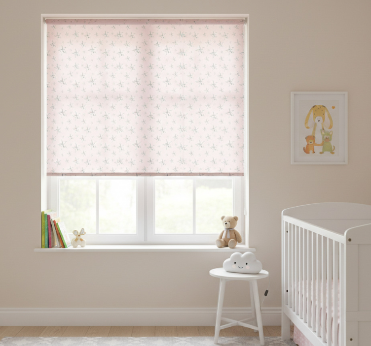 Tenda a rullo cameretta stelle bianche su sfondo rosa