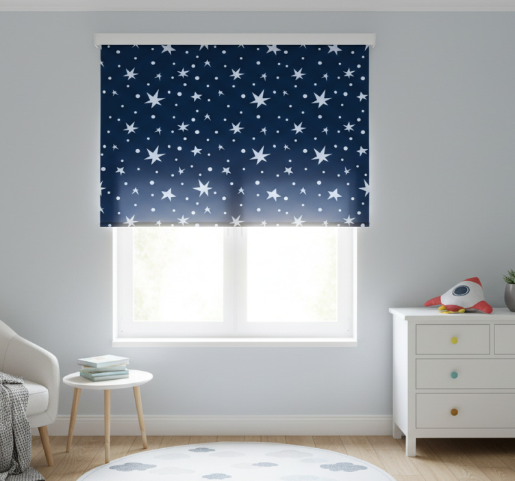 La tenda a rullo cameretta tenda a rullo cameretta stelle su blu navy è perfetta per arricchire l'ambiente grazie alla sua capacità di combinare praticità e stile. Questo prodotto non solo protegge la stanza dalla luce solare diretta, ma offre anche privacy quando è abbassato, rendendola un'ottima scelta per le camerette. Inoltre, la sua estetica accattivante contribuisce a migliorare l'arredamento della stanza, creando un'atmosfera accogliente e stimolante per i bambini!