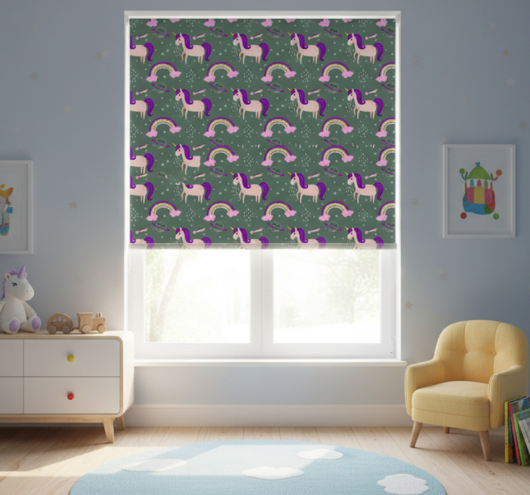 Tenda a rullo cameretta unicorni rosa e verdi