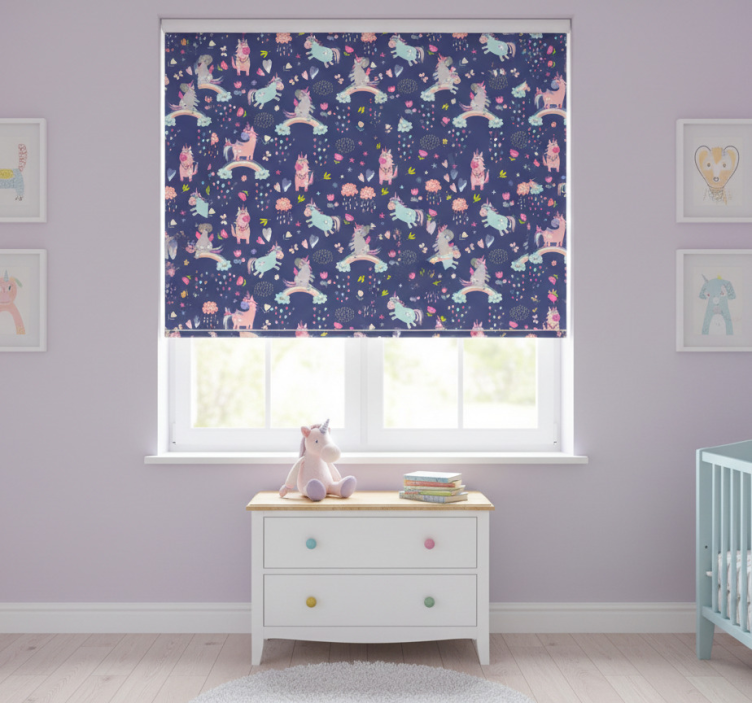 Tenda a rullo cameretta unicorni colorati arcobaleno