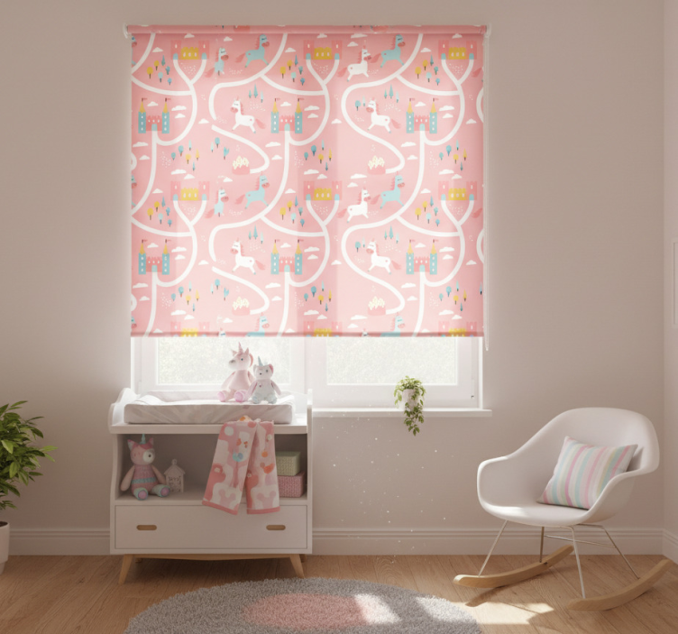 Tenda a rullo cameretta unicorni e castelli rosa