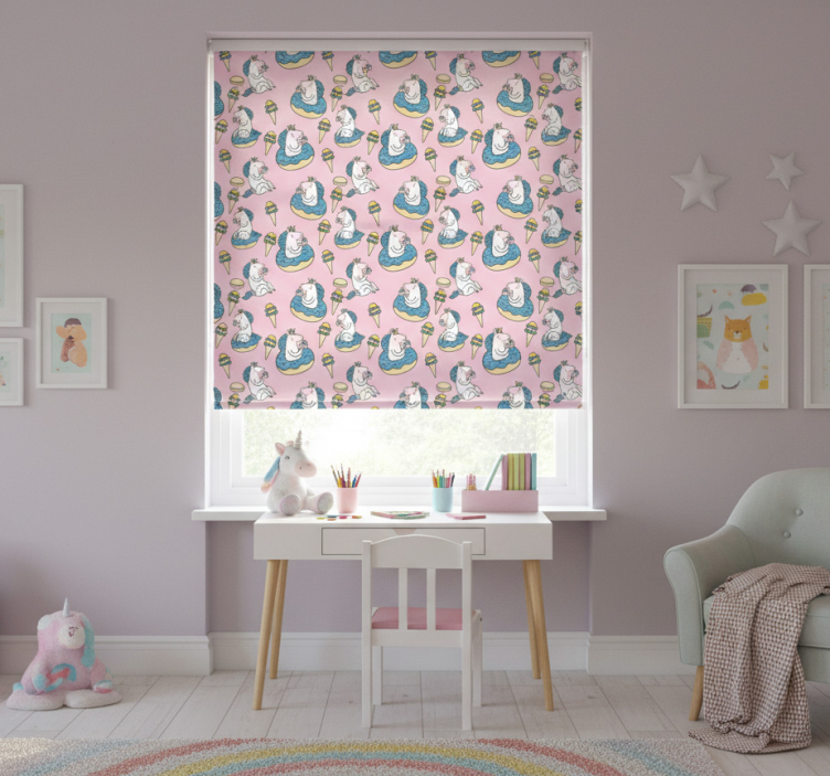 Tenda a rullo cameretta unicorni e coni gelato rosa