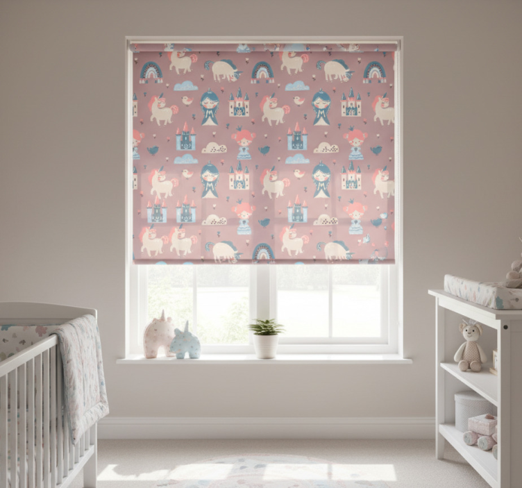 Tenda a rullo cameretta unicorni e principesse pastello