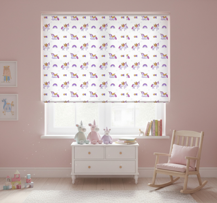 Tenda a rullo cameretta unicorni rosa pastello con ali