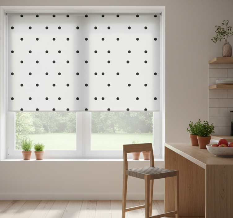 La tenda a rullo cucina tenda a rullo cucina a pois neri in stile nordico è l’ideale per chi desidera arricchire l’arredamento della propria cucina! La sua eleganza discreta valorizza ogni dettaglio e crea un'atmosfera calda e accogliente. Non solo è un elemento decorativo di grande impatto visivo, ma offre anche praticità e funzionalità, rendendo ogni momento in cucina ancora più piacevole e stimolante!