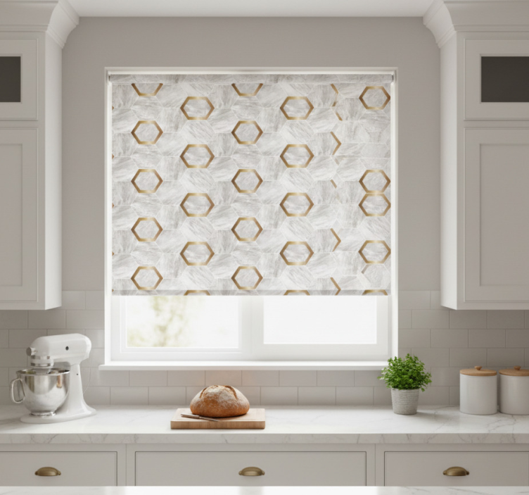 Tenda a rullo cucina grandi motivi esagonali oro