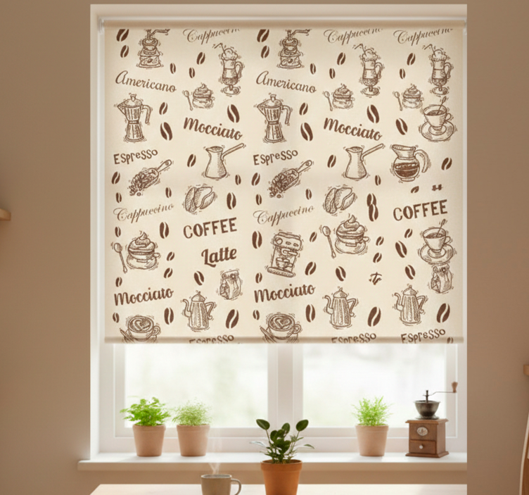 Tenda a rullo cucina motivi 3d con nomi di caffè