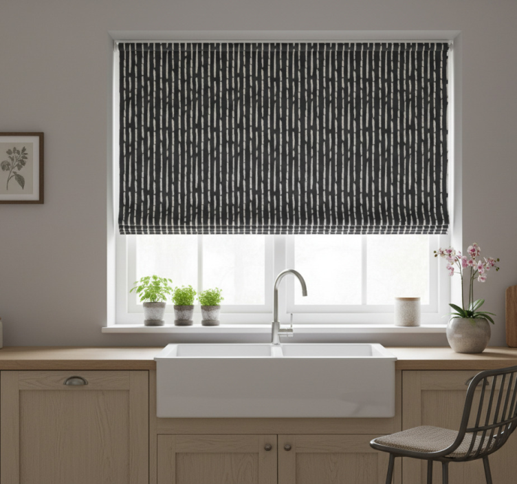 Tenda a rullo cucina motivo a righe in inchiostro
