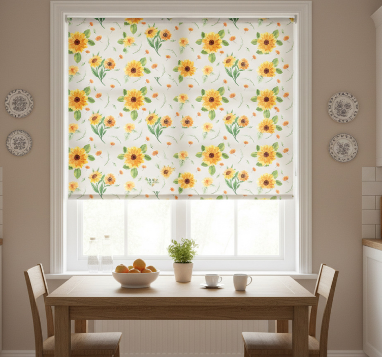 Tenda a rullo cucina motivo fiori girasole acquerello