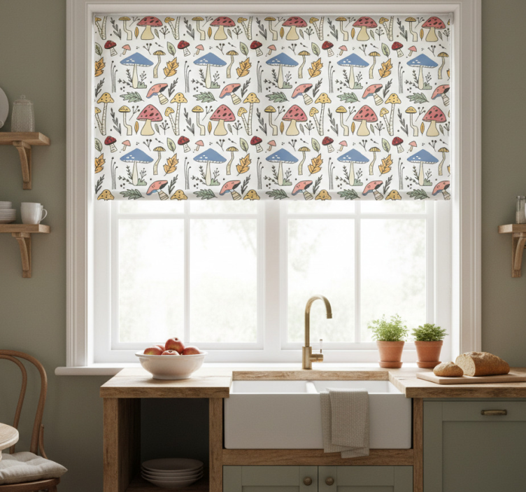 Tenda a rullo cucina motivo funghi disegnati a mano