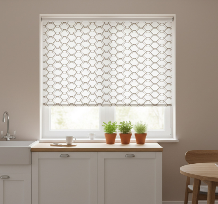 Tenda a rullo cucina motivo geometrico ondulato marrone