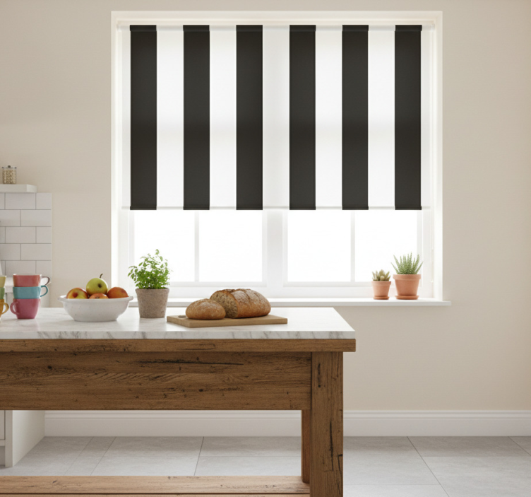 Tenda a rullo cucina righe bianche e nere