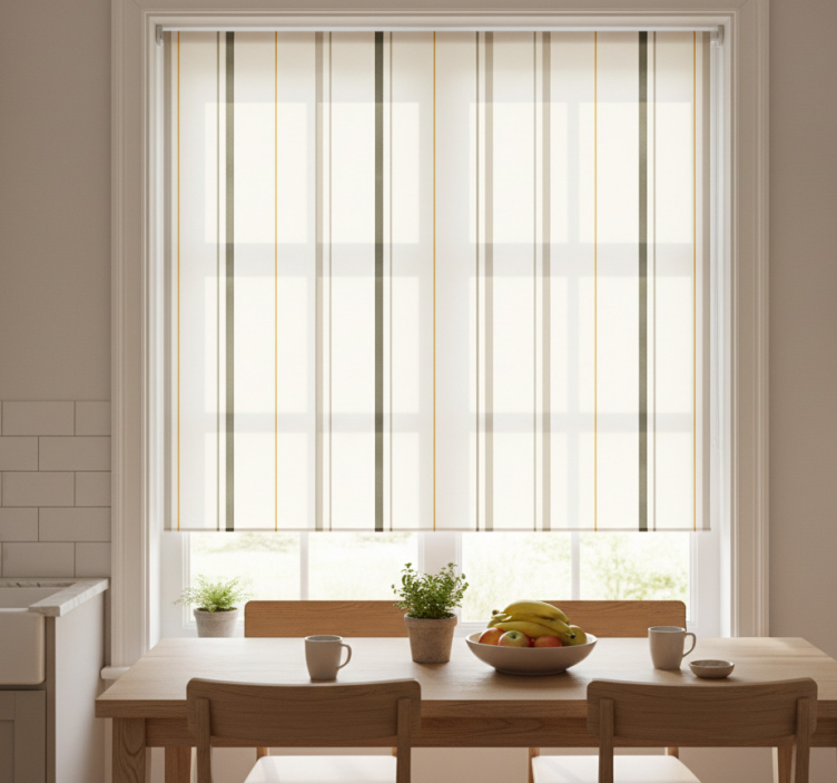 Riferimento: E6268La tenda a rullo cucina righe verticali beige è un elemento di design unico che arricchisce il vostro spazio con eleganza e semplicità. Caratterizzata da un design minimalista ma accattivante, questa tenda unisce praticità e stile grazie alla sua trama a righe verticali e alla tonalità beige che si adatta perfettamente a qualsiasi tipo di arredamento, creando un'atmosfera calda e accogliente.