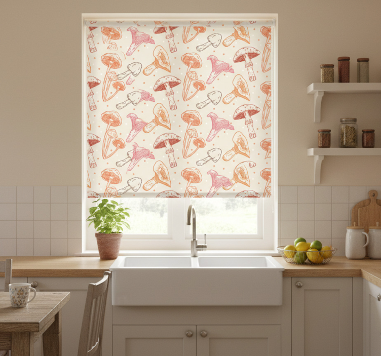 La tenda a rullo cucina tenda a rullo cucina set di funghi acquerello è perfetta per chi desidera trasformare la propria cucina in un ambiente accogliente e stiloso! Con il suo design originale e i colori pastello, questa tenda non solo arreda ma crea anche un'atmosfera calda e invitante. È ideale per chi ama la natura e vuole portare un tocco di freschezza negli interni. Inoltre, offre la giusta privacy e il controllo della luce, rendendola un elemento essenziale per ogni cucina!