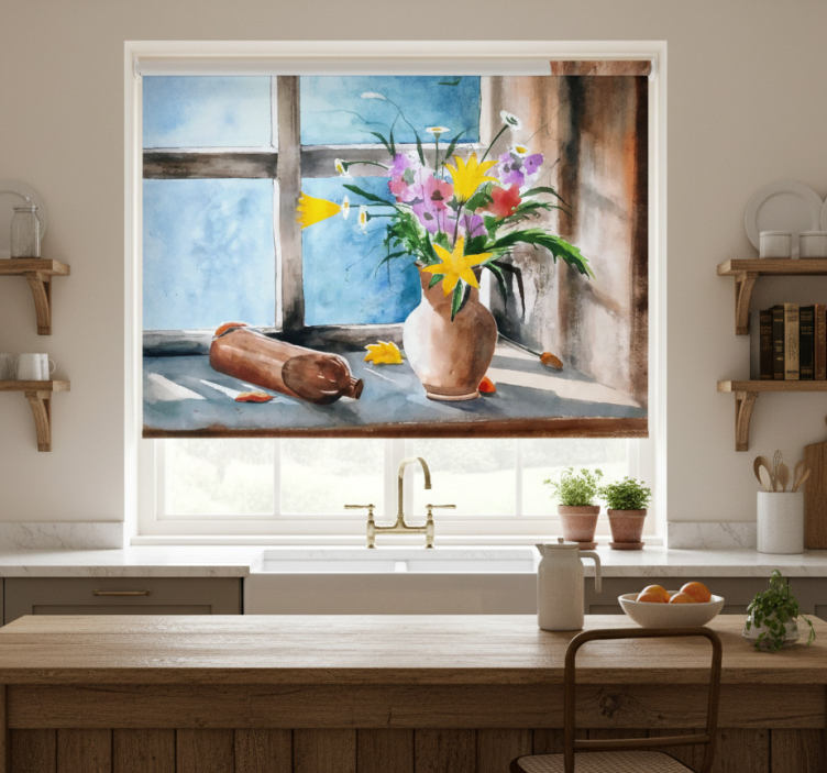 Tenda a rullo cucina stile vintage piante