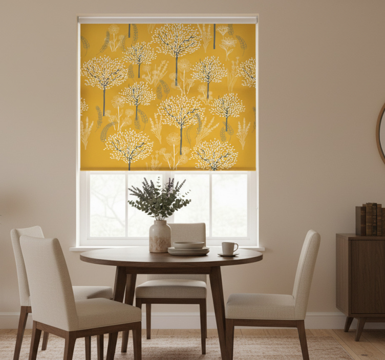 Tenda a rullo gialla motivo alberi