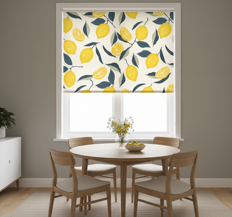 Tenda a rullo gialla motivo limone