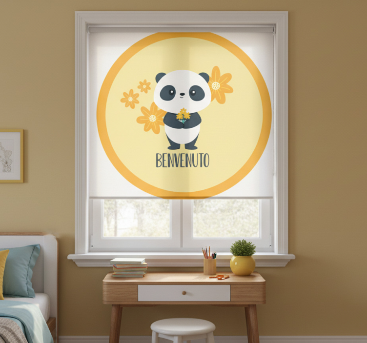 Tenda a rullo gialla panda benvenuto nella mia stanza