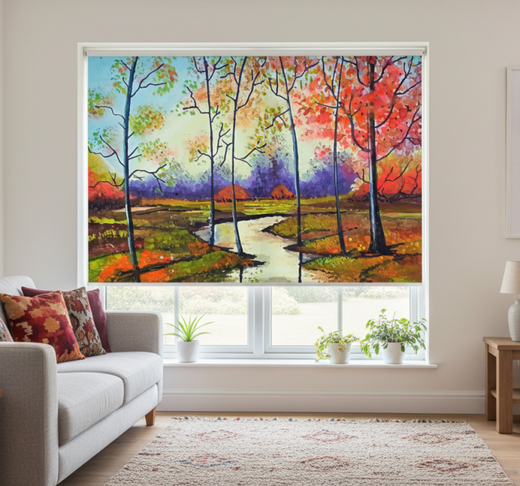 Tenda a rullo soggiorno arte moderna alberi primaverili