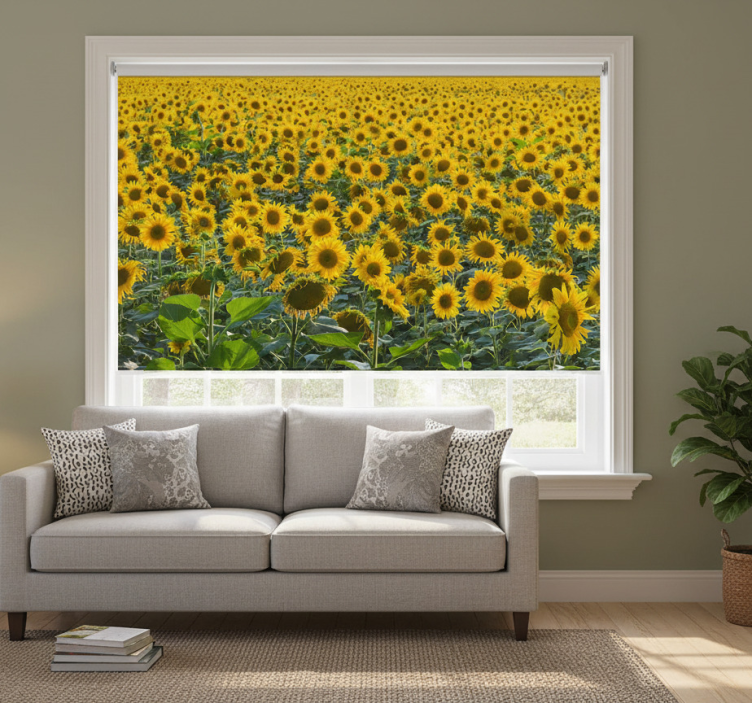 Tenda a rullo soggiorno campo di girasoli al tramonto