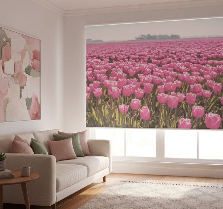 Tenda a rullo soggiorno campo di tulipani rosa diversi