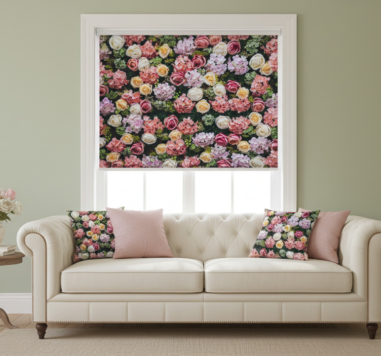 Tenda a rullo soggiorno fiori stile vintage