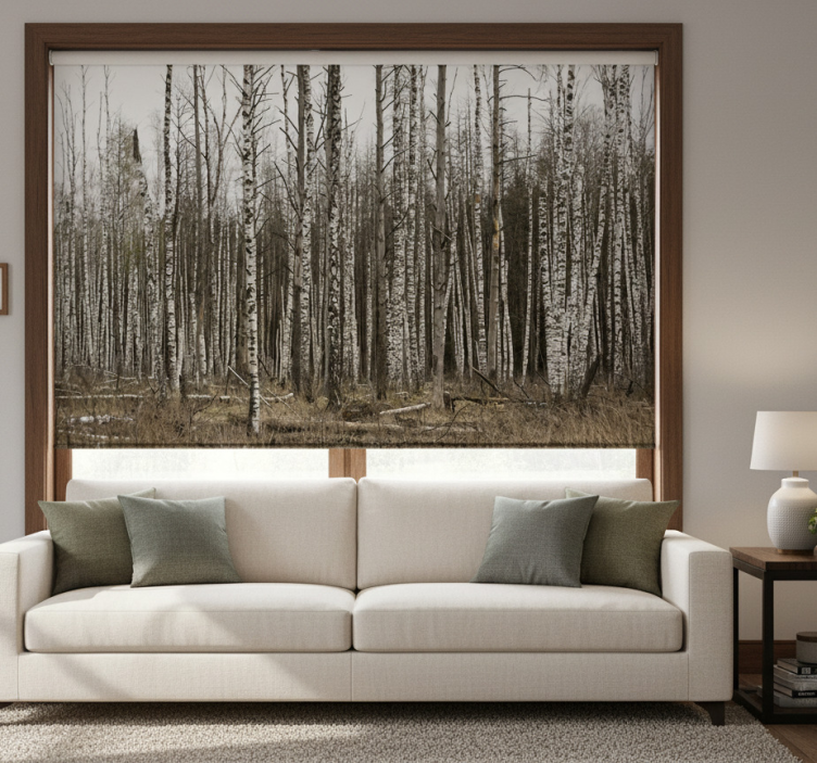 Tenda a rullo soggiorno foresta di betulle grigie