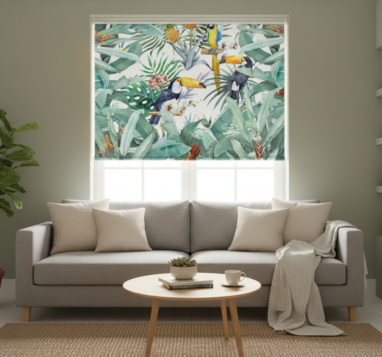 Tenda a rullo soggiorno giungla dipinta
