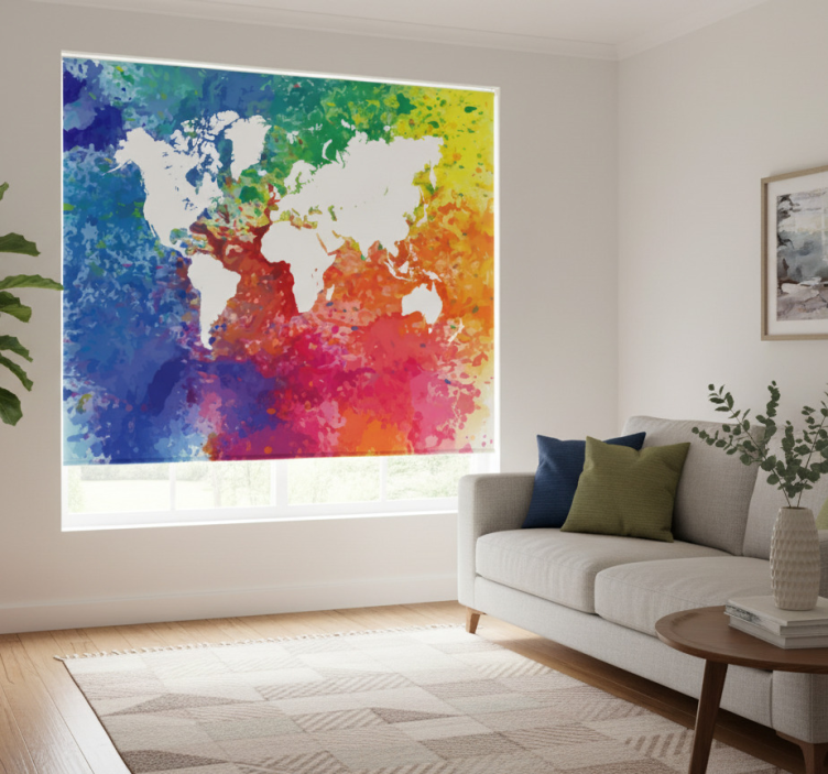 Tenda a rullo soggiorno mappa del mondo colorata artistica