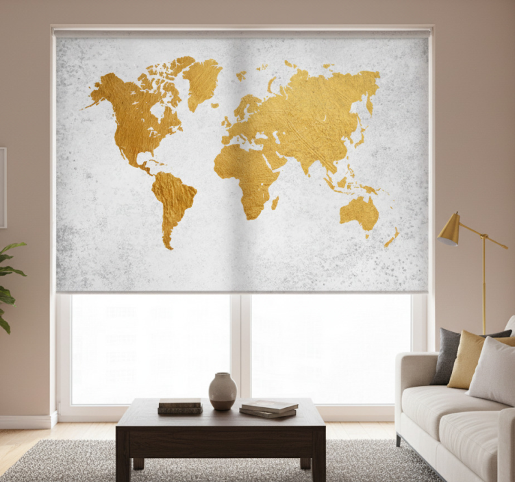 Tenda a rullo soggiorno mappa del mondo dorata