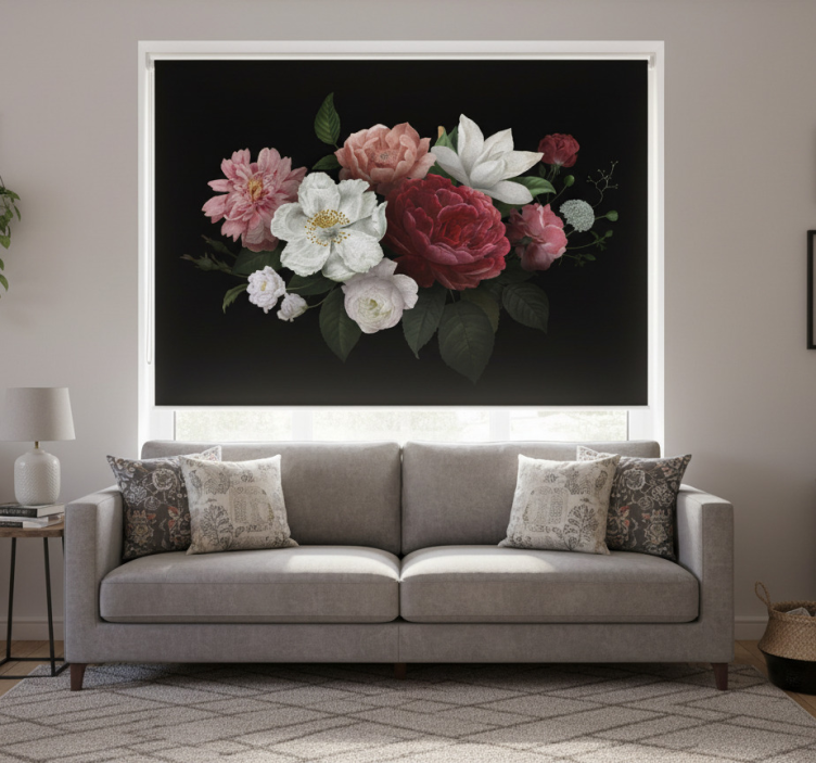Tenda a rullo soggiorno rose vintage su sfondo nero