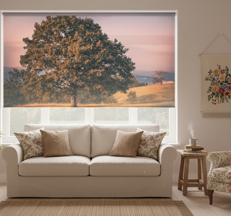 Tenda a rullo soggiorno stile cottagecore albero antico